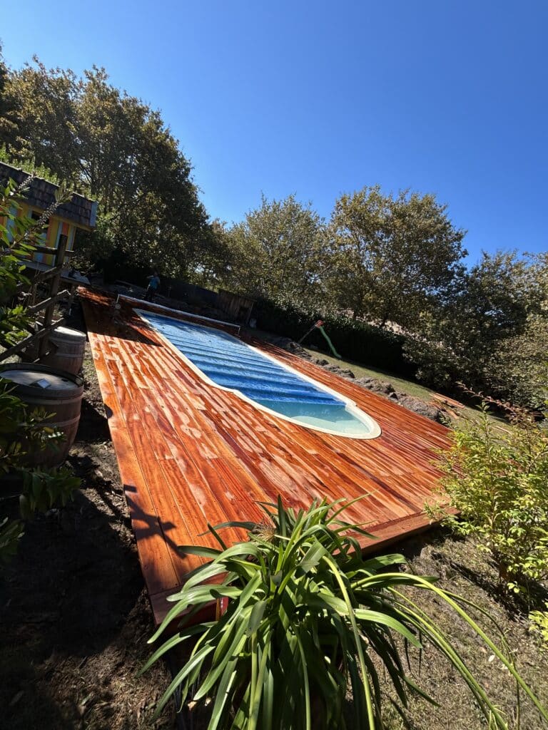 Nous utilisons une large gamme d’essences de bois adaptées aux conditions extérieures et à proximité des piscines. Le bois composite, apprécié pour sa durabilité et sa faible nécessité en entretien, ainsi que des bois exotiques comme le teck, l’ipé, ou encore le bois traité en autoclave, sont des choix populaires. Ces matériaux résistent bien aux intempéries et aux éclaboussures de chlore ou d’eau salée.